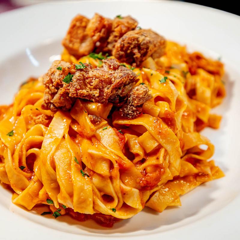 Cafe Fiore, meaning flower in Italian is a casual trattoria style restaurant with a modern twist on classic Italian dishes, inspired by Maria and Anna Fiore and their Italian roots of Pugliese cuisine. Fiore uses refurbished, reused and reclaimed wood and iron to capture a sleek but comfortable design, which is reflected in the cuisine. Homemade breads, pizza rolled by hand, housemade porchetta and tortellaci. The menu is approachable and captures a wide selections for both lunch and dinner.